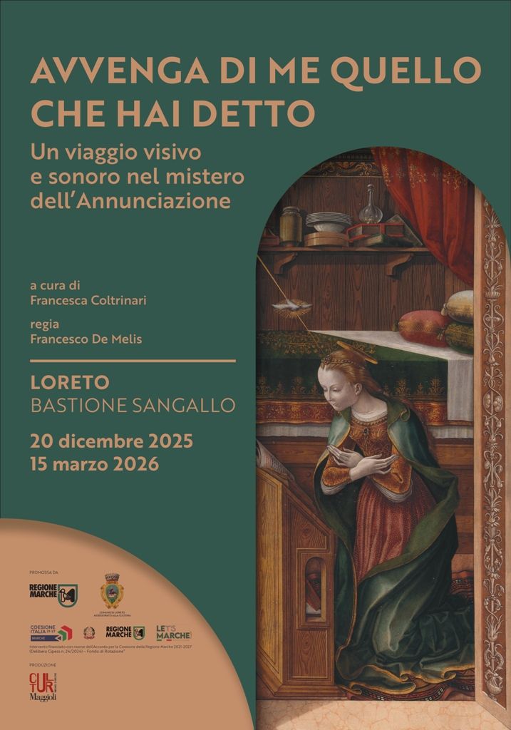 Come ricorda San Giovanni Paolo II, Loreto è il “vero cuore mariano della cristianità”. Dal 20 dicembre 2025 al 15 marzo 2026 il Bastione Sangallo ospita Avvenga di me quello che hai detto. Un viaggio visivo e sonoro nel mistero dell’Annunciazione, a cura di Francesca Coltrinari con la regia di Francesco De Melis. L’evento, pensato a conclusione dell’anno giubilare, propone un percorso multimediale dedicato all’Annunciazione, l’evento fondante della storia cristiana, esplorato attraverso i capolavori della storia dell’arte. Un’esperienza immersiva tra fede, arte e comunicazione contemporanea.